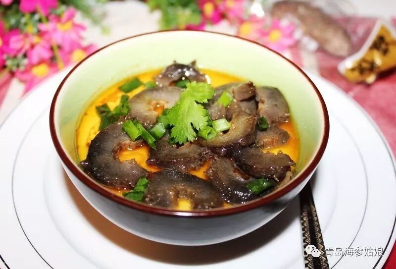 2.海参鸡蛋羹:将海参与少量木耳切碎后放入搅拌好的鸡蛋中蒸蛋羹,具有很好的滋阴养血效果。