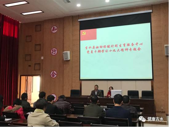 为学习贯彻落实党的十九大精神,12月8日下午,吉水县妇幼保健计划生育服务中心在县委党校举办党的十九大精神专题会,邀请了县委党校副校长赵小湖进行专题宣讲,中心全体党员干部参加了此次会议。