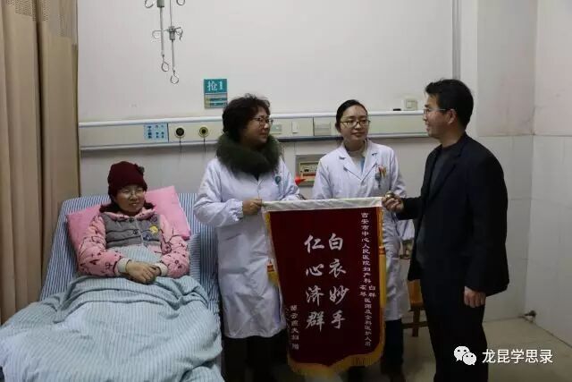 3月20日,二胎准妈妈邹女士在怀孕14周时,突发子宫破裂,大出血,吉安市中心人民医院妇产科副主任医师白群、医师左琴、护士肖莲华奋力抢救,终于将她从死亡边缘拉了回来。10天后,邹女士临出院时给医院写来了感谢信,并为医护人员送上了写有“白衣妙手,仁心济群”的锦旗。