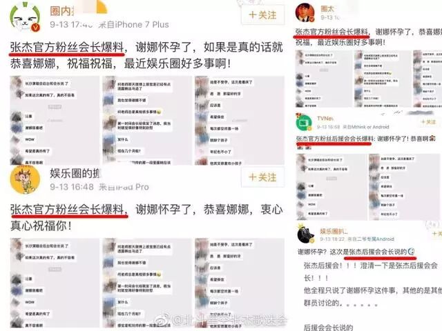 这不,今天又有人打着张杰后援会会长的旗号来曝光谢娜怀孕的消息,令人可笑的是张杰根本没有后援会,只有歌迷会,而且稍微想一想就知道,一个官方粉丝会怎么可能主动爆料偶像的八卦。