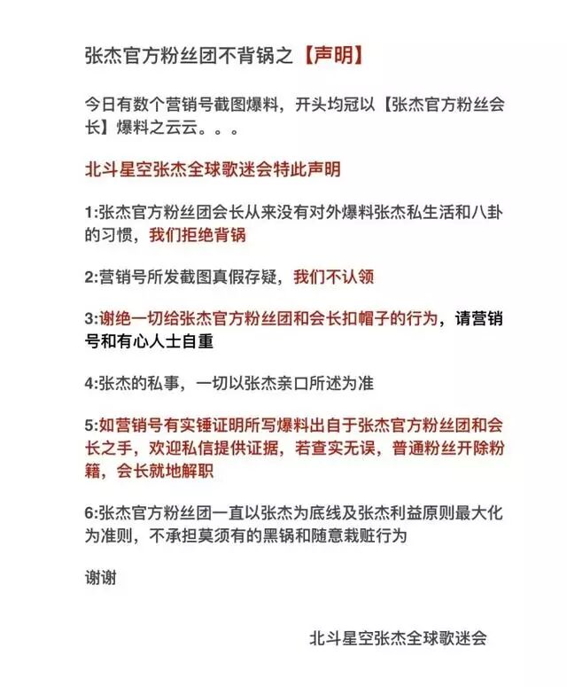 小编想说就算是会长,也不会知道这些吧,更何况这不是会长,因为张杰歌迷会已经出声明:谢绝扣帽子,拒绝背锅!