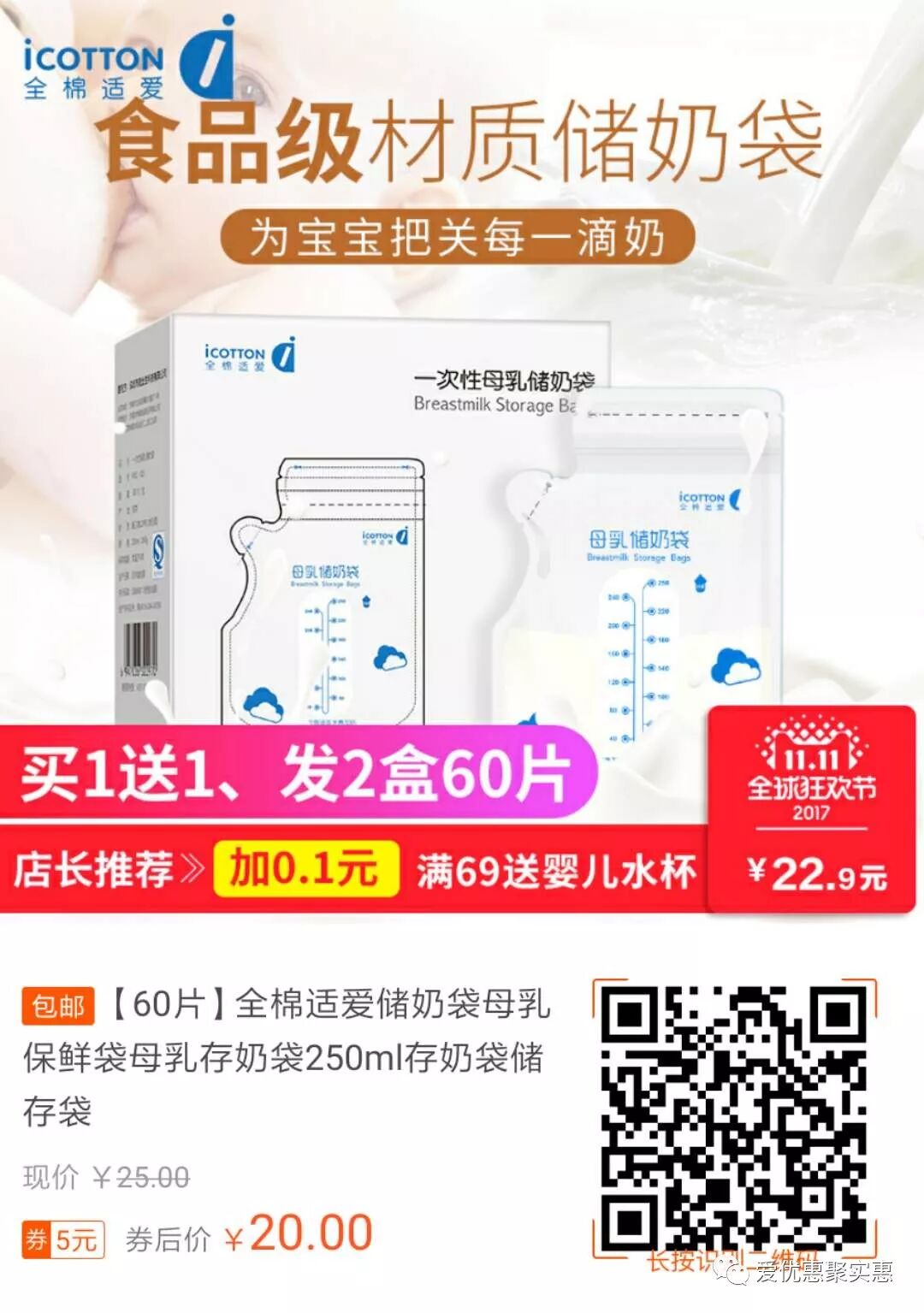 【60片】全棉适爱储奶袋母乳保鲜袋母乳存奶袋250ml存奶袋储存袋【包邮】