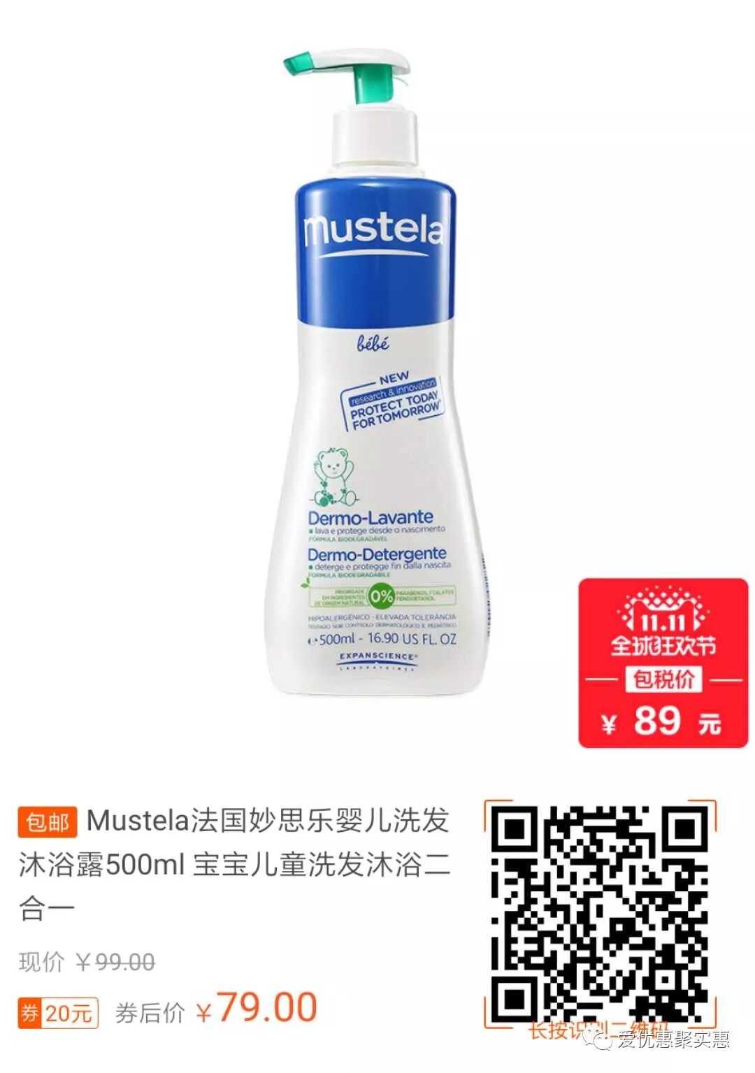 Mustela法国妙思乐婴儿洗发沐浴露500ml 宝宝儿童洗发沐浴二合一【包邮】