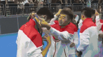 乒乓球男团决赛中,许昕率领的上海队3-0战胜黑马四川队夺冠。上届全运会,王励勤、许昕和尚坤组成的上海队不敌解放军队获亚军;四年后,颁奖仪式上,上海队员把金牌都挂在了王励勤的脖子上,感谢这位上海乒乓球“当家人”的支持,也弥补了他四年前丢金的遗憾。丨四块金牌,还好大力哥脖子够长!