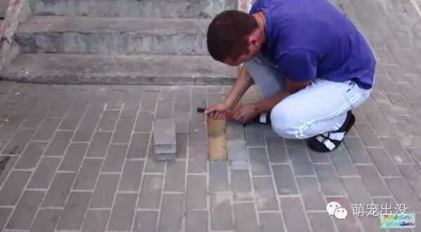 ▼当时就是在这个地面上发现哀号声。要不是这只小狗发出的可怜声音,可能它永远也没机会被发现。▼好心男子试图将地砖撬开,好救出受困的狗狗。