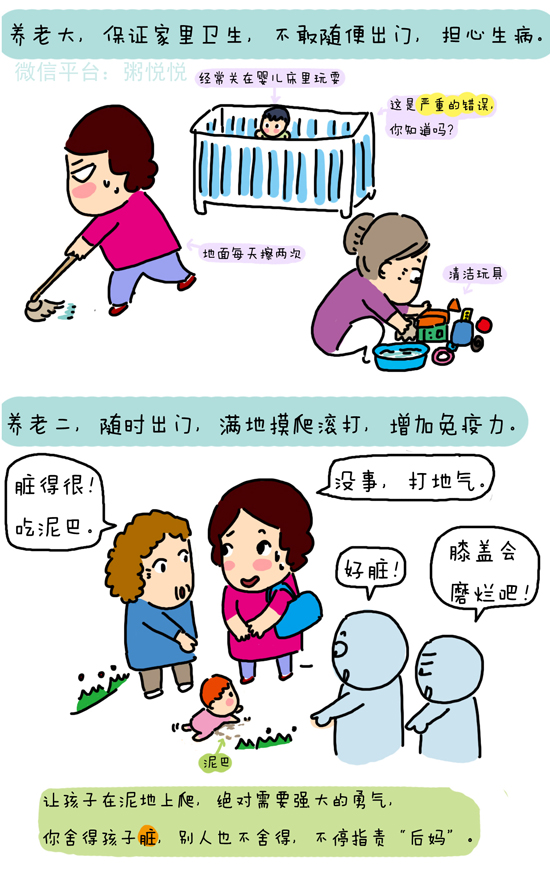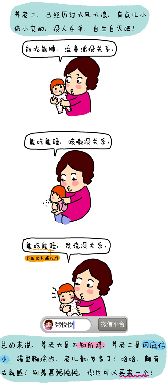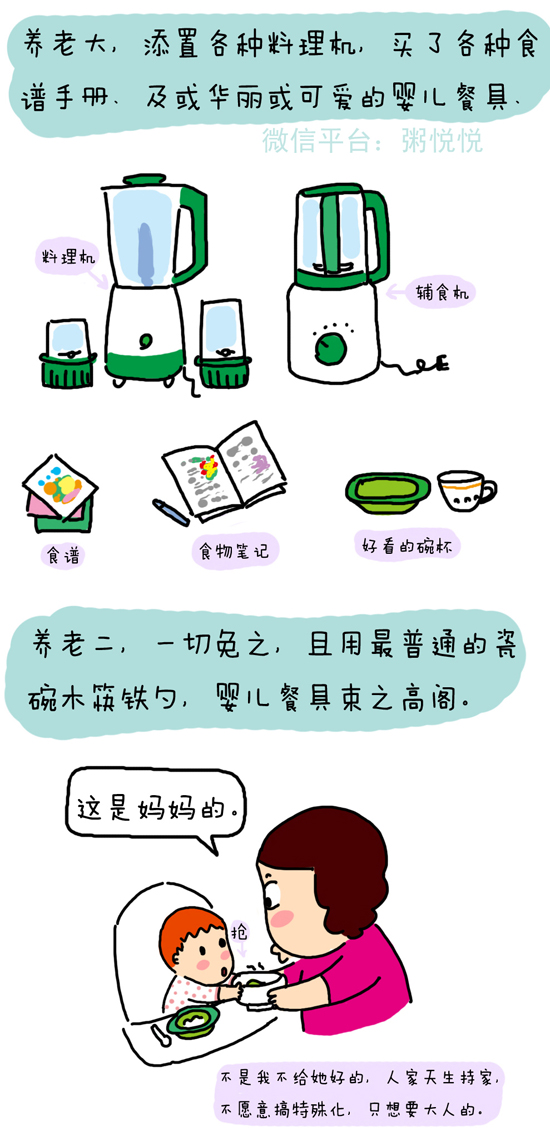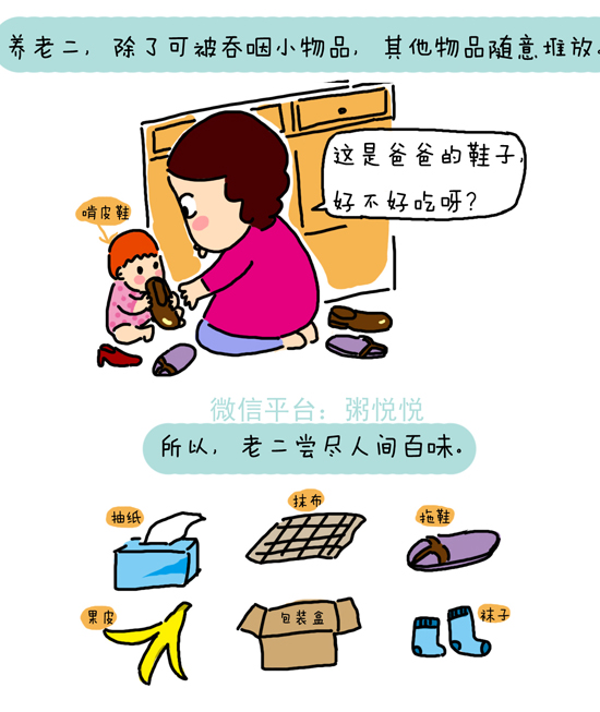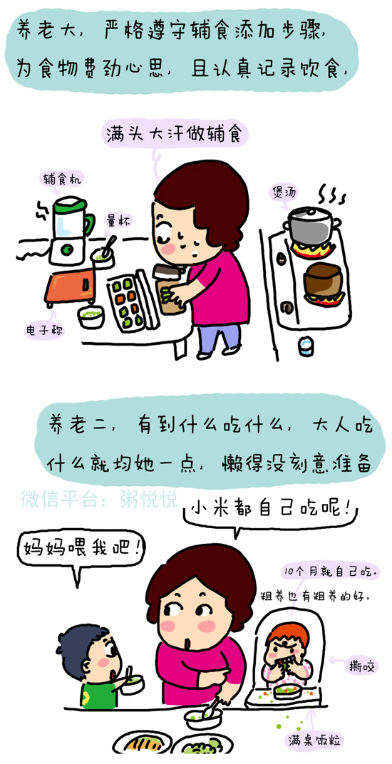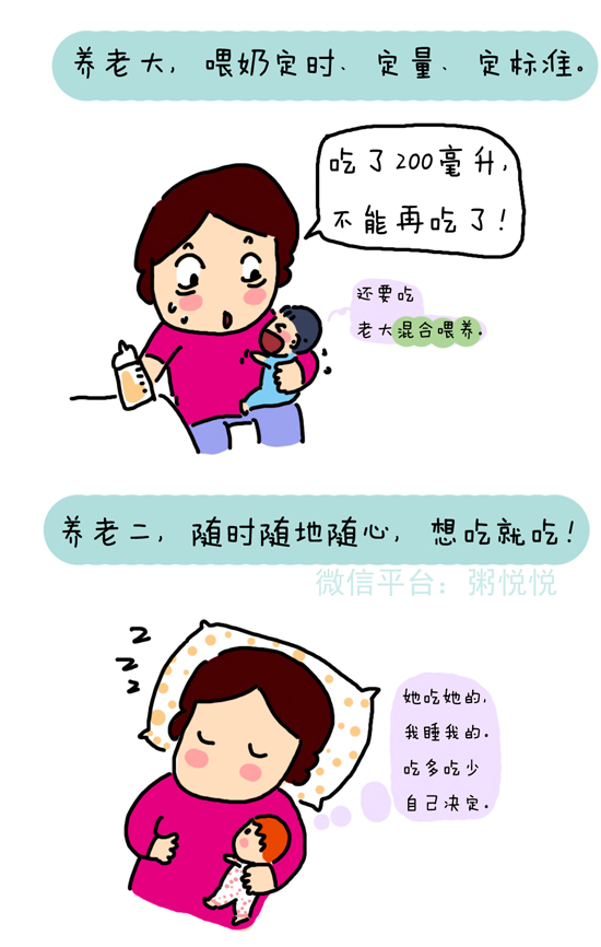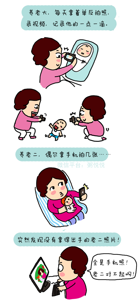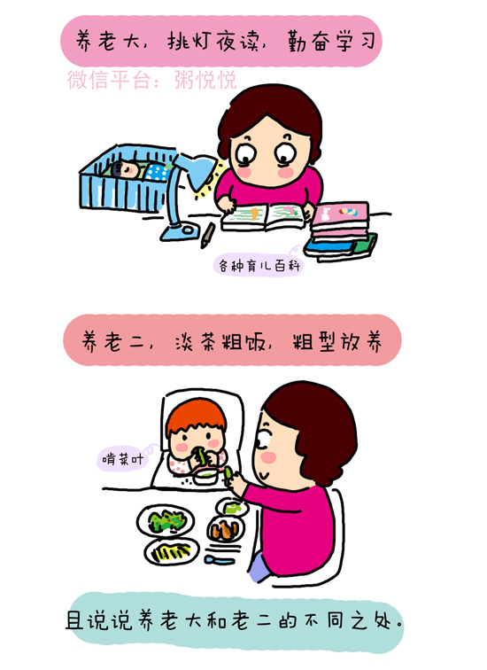 看漫画家粥悦悦是如何形容养育老大老二的不同之处: