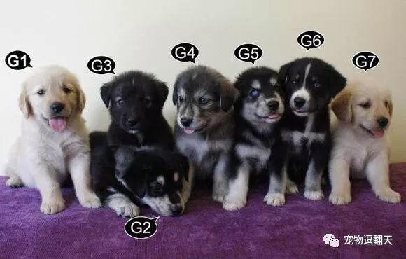 有趣的是,生下来的串串有几只很像普通哈士奇的小时候,还有两条是纯正的金毛样子,看来还是那个哈士奇的基因比较强大。不过到底是串串所以这些“金士奇”连三把火都没有,长得倒是有点儿像阿拉斯加了。不过也是十分的可爱~
