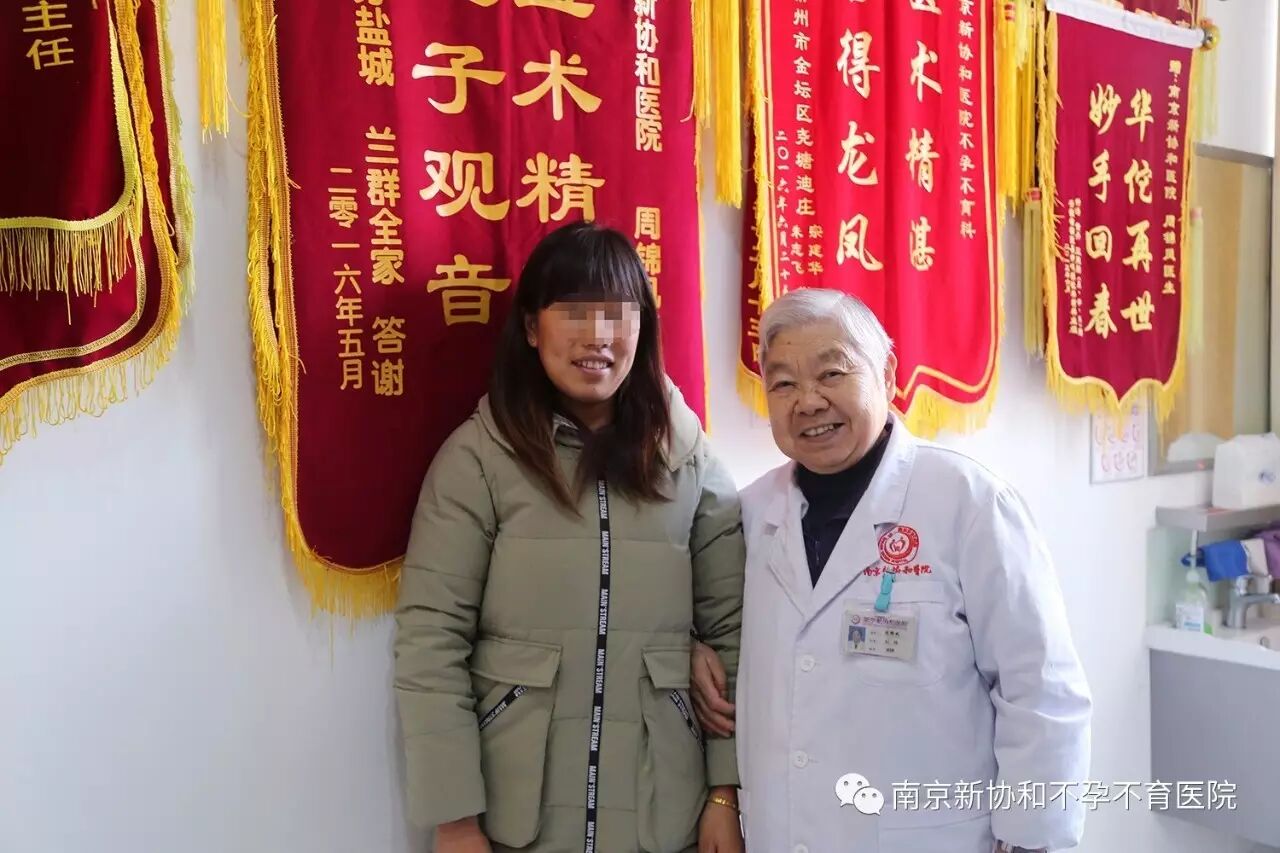 不久前,彭女士没来月经,去医院一检查惊喜的发现自己成功怀孕了。这不,为了感谢周主任的送子之情,彭女士夫妇特地从扬州赶到南京新协和医院向周主任当面致谢。