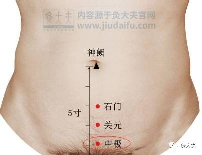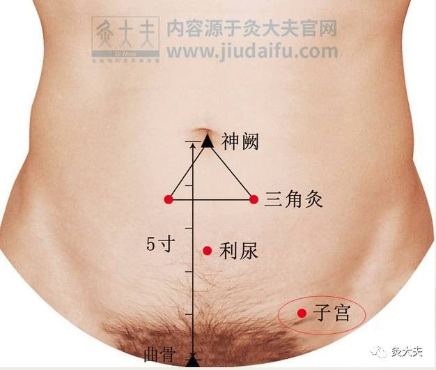 取穴:关元、中脘、神阙、水分、子宫、中级、八髎穴