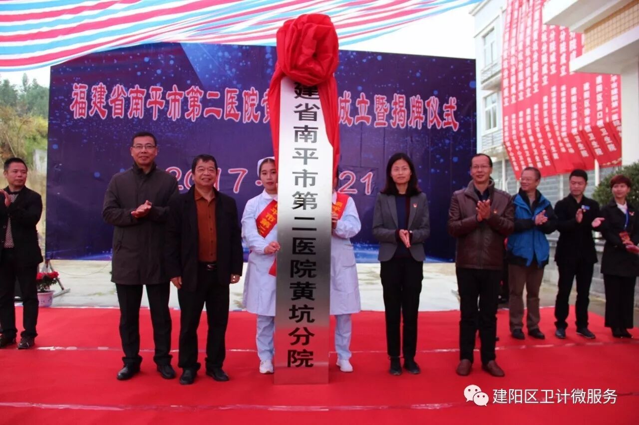11月21日,南平市第二医院黄坑分院揭牌仪式在黄坑镇卫生院举行。南平市第二医院黄坑分院成立是建阳区第二家紧密型医疗联合体形成,是建阳区进一步深化医药卫生体制改革的重要举措,着力推进全区医疗服务资源纵向联合,提升基层医疗机构的基本医疗和基本公共卫生服务水平。建阳区副区长柯红梅,南平市第二医院院长巢毅,建阳区卫计局党组书记、局长许群瑜,建阳区黄坑镇党委书记周春林,建阳区卫计局、计生协领导陈文勇、张建宇,建阳区各医疗卫生单位主要负责人出席揭牌仪式。