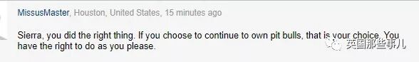 “你做得很对,如果你选择继续饲养比特犬,那也是你的选择。你有权做自己想做的事情。”