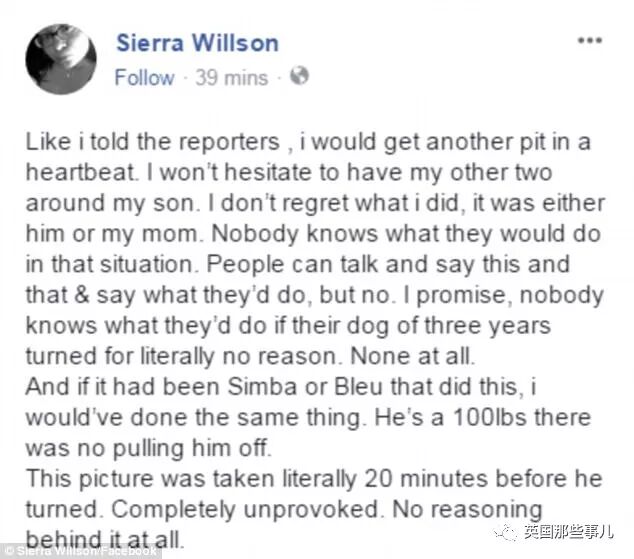 媒体报道了这桩“杀狗救母”的新闻之后,Wilson在网上收到很多私信,骂她是个刽子手,是个恐怖的恶魔,竟然亲手杀死了自家的狗狗。