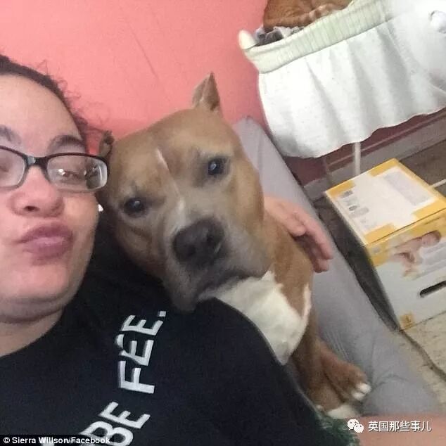 她搂着的比特犬名叫Buster,是Wilson的弟弟从救助站领养的汪星人。