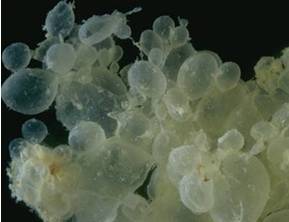 葡萄胎分别完全性普通胎和部分性葡萄胎,表现为葡萄串样的水泡,不伴或伴胎儿组织,临床上可表现为持续、不规则的阴道出血,腹胀感,有时会排出水泡样组织,早孕反应重,一旦确诊需及时终止妊娠。