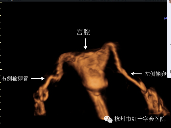 四维子宫输卵管超声造影是一种检查输卵管通畅性的新技术。该技术将新型无毒无害的微泡超声造影剂直接注入子宫腔,与以往通过静脉注射的碘造影剂相比,不会发生过敏反应不需要皮试,所以更加安全方便,注入后使子宫腔和输卵管腔显影,同时通过阴道超声实时全面观察宫腔及输卵管的形态,以判断子宫腔有无异常,输卵管管腔是否通畅,输卵管走行有无扭曲等(见下图)。