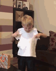 小男孩抱着T恤说:我超爱它~仿佛正抱着小宝宝的摸样,真是个暖心的小男子汉~