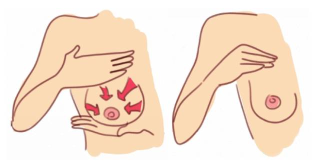 手掌法:在每天沐浴后或睡觉前,用手掌侧面轻按乳房(露出乳头),并围绕乳房均匀按摩,坚持2~3分钟。
