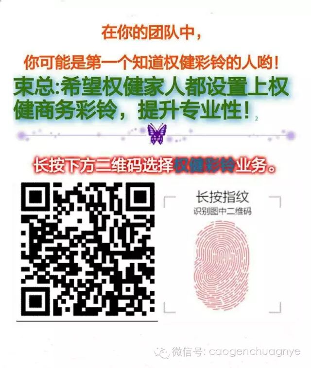 权健彩铃开通方式:长按下方二维码,开启属于你的权健事业彩铃!