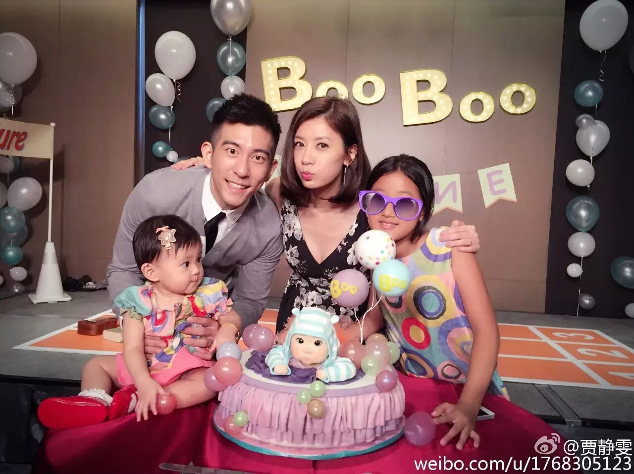 一家四口其乐融融,右一是贾静雯和前夫的女儿,左一是小女儿咘咘,大大的眼睛,真的炒鸡可爱!都说孩子的眼睛如水是最纯洁的,你看,已经要被咘咘的眼睛萌化了。