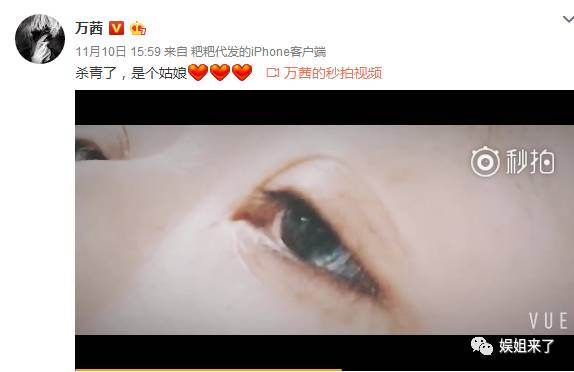 戏里和胡歌那么甜,戏外的万茜突然在微博宣布,女儿出生了!她还俏皮地用了“杀青”一词。