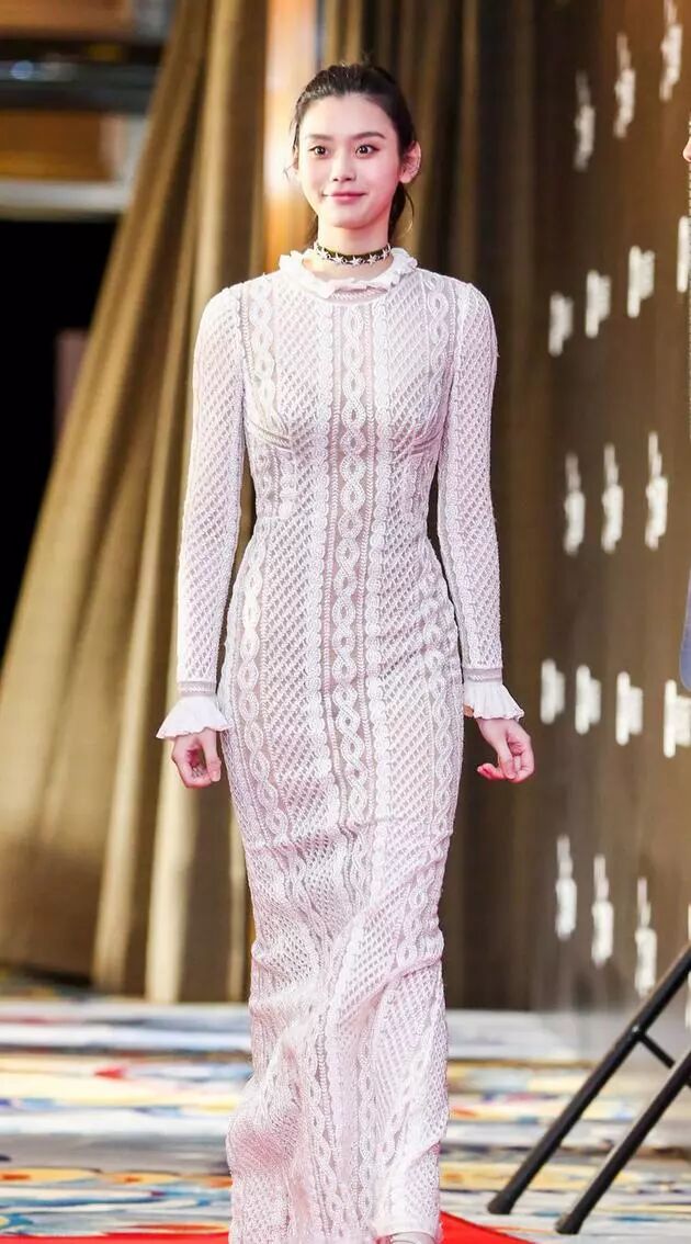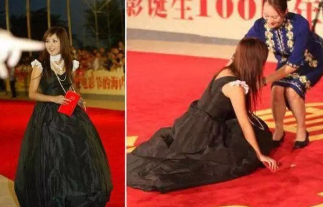 比如,跟何洁相比。何洁早年走红毯摔倒时,她就很自然地起身继续走完全场。