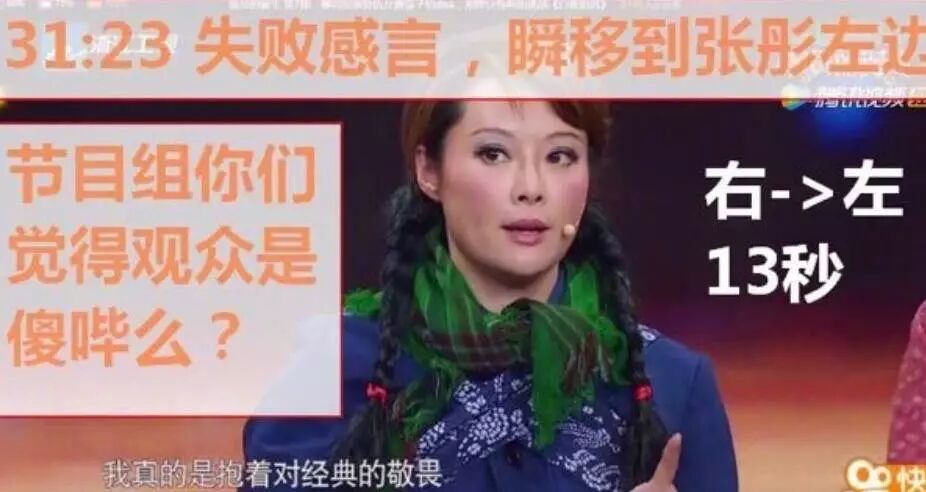 突然镜头一转,我们看到的是宋丹丹的不满,和章子怡的不屑。