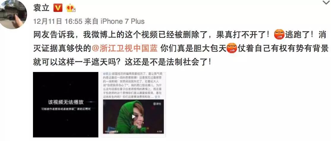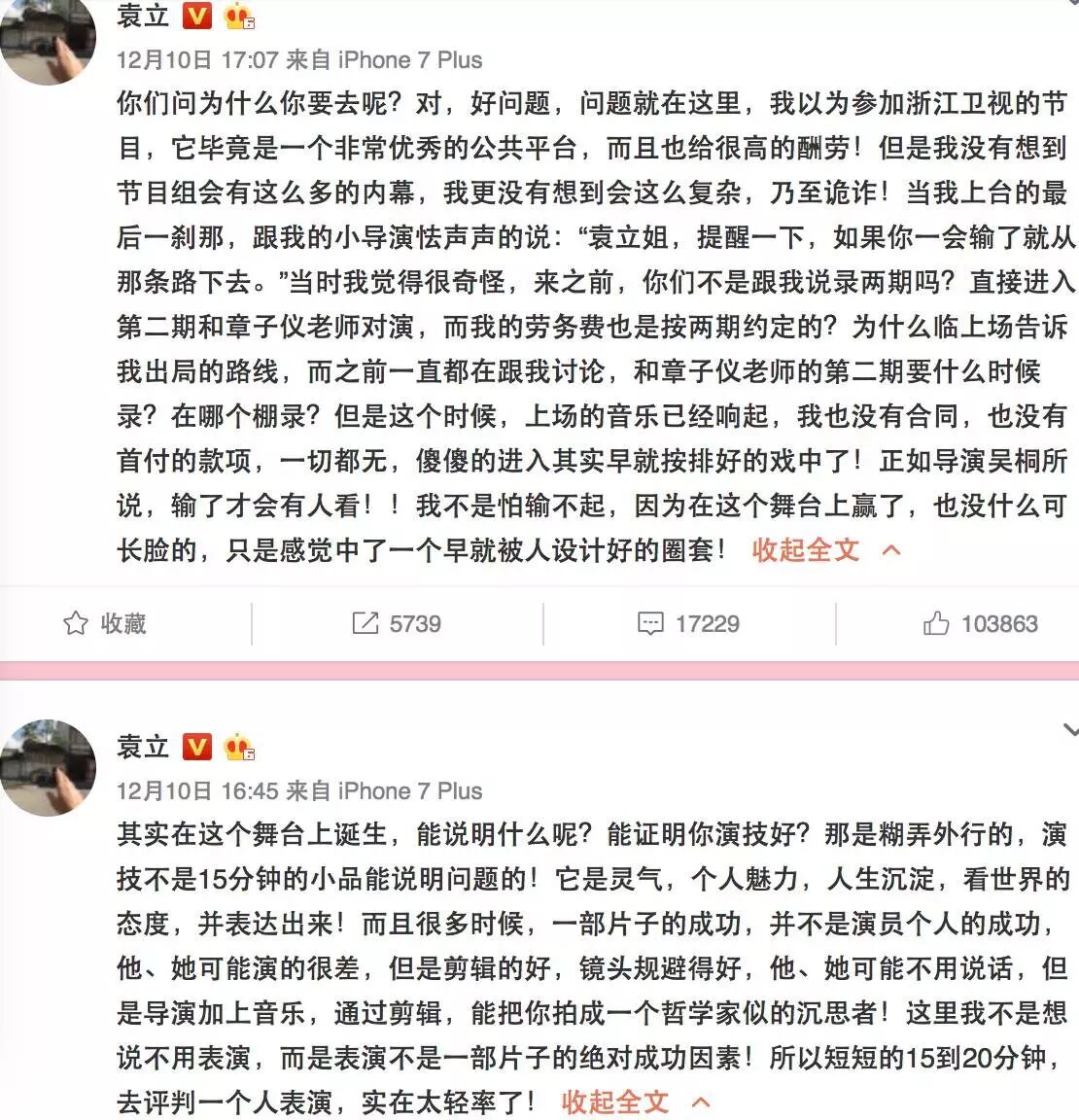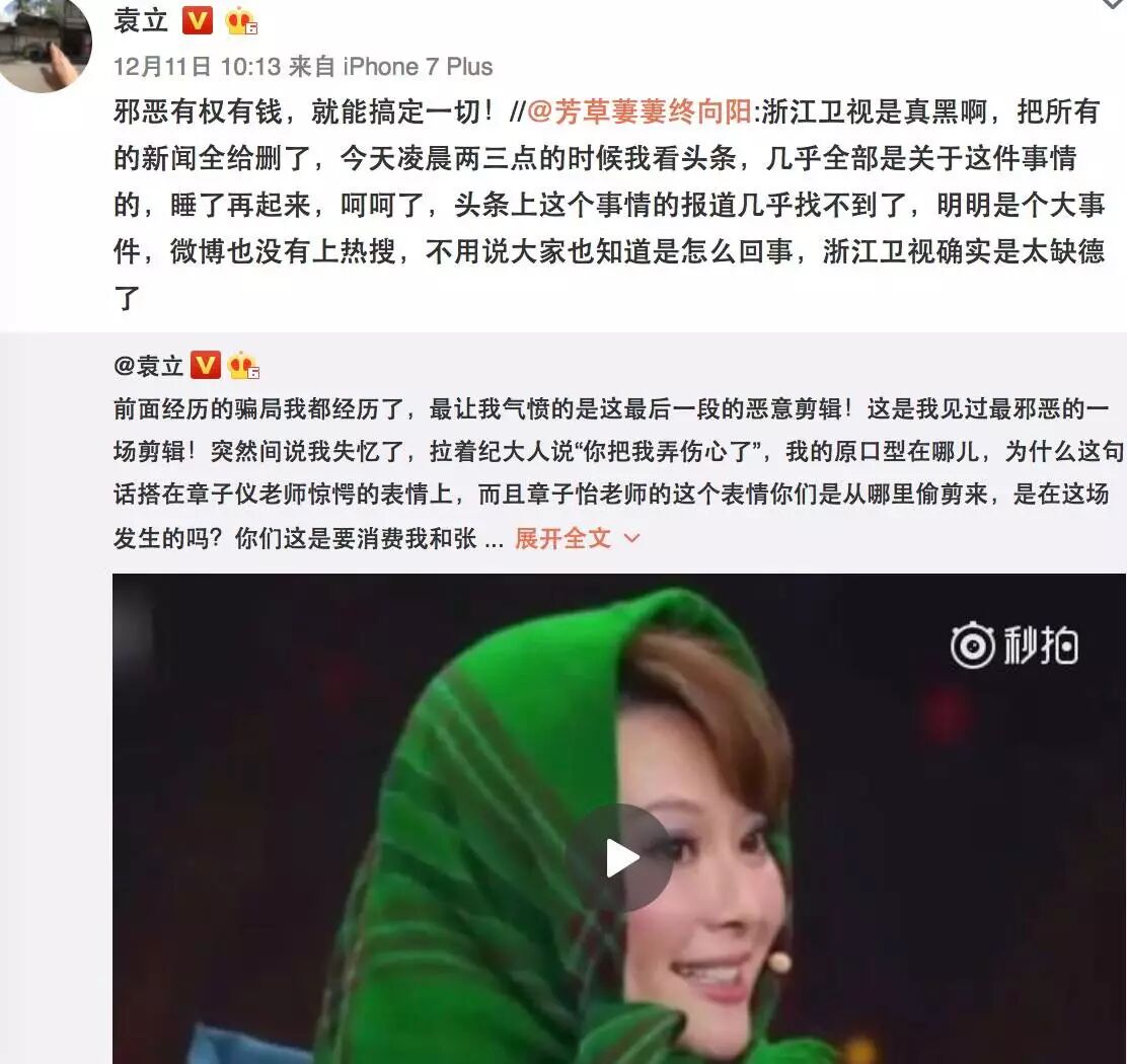 12月9号,袁立彻底发功,她说自己遭到了浙江卫视的报复。