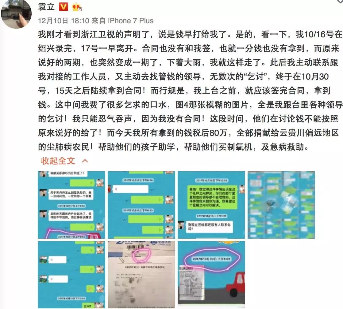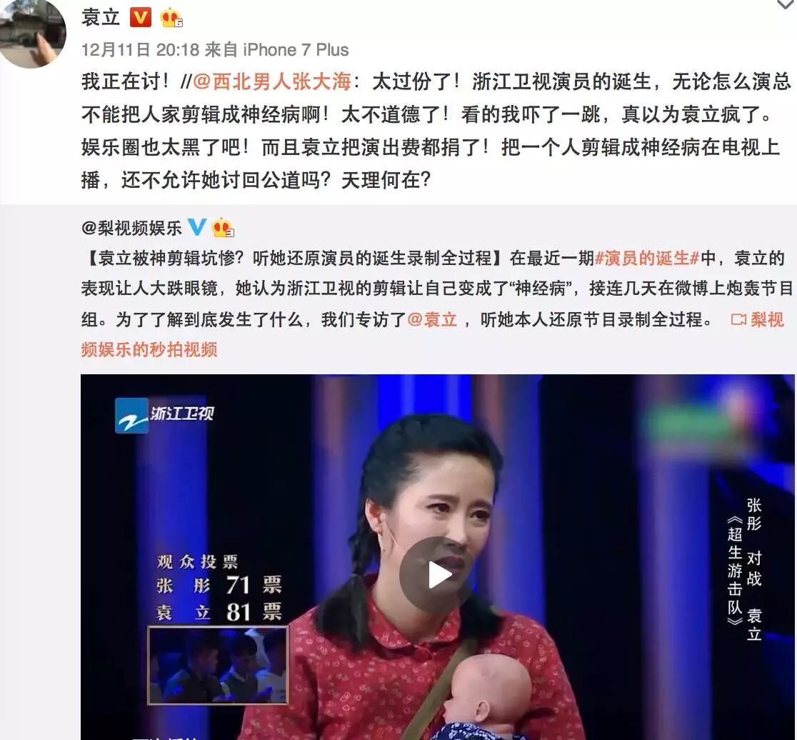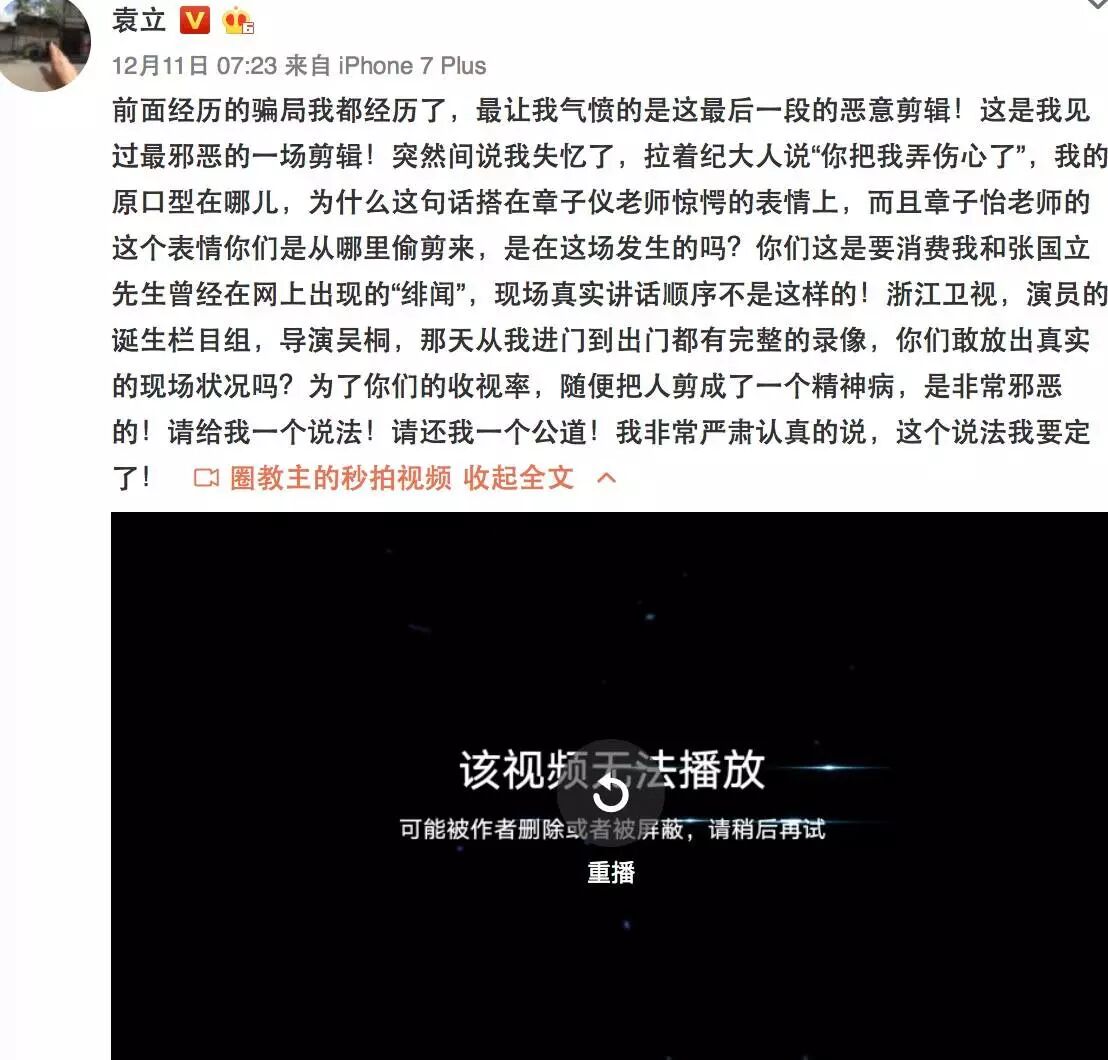 12月9号,袁立彻底发功,她说自己遭到了浙江卫视的报复。