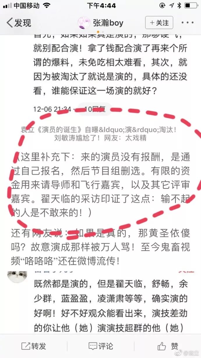 之后,她把节目组说的「参演嘉宾0片酬」的消息圈出来,引起观众注意。