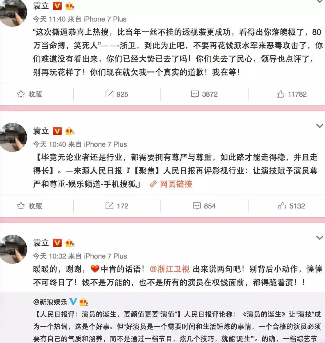 果然,袁立的努力没有白费,这件事引起了《人民日报》和《新浪娱乐》的关注。袁立讽刺浙江卫视:“不要再雇水军了,领导都点名了,你们失去民心就别玩花样了!”