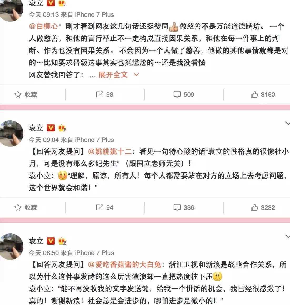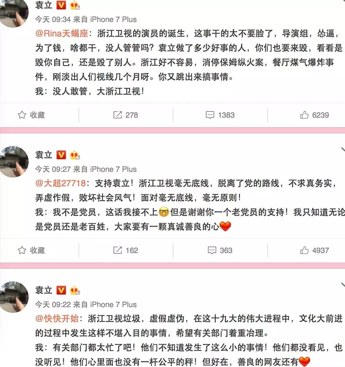 浙江卫视一直没有回复,袁立紧接着开始转发网友的吐槽。