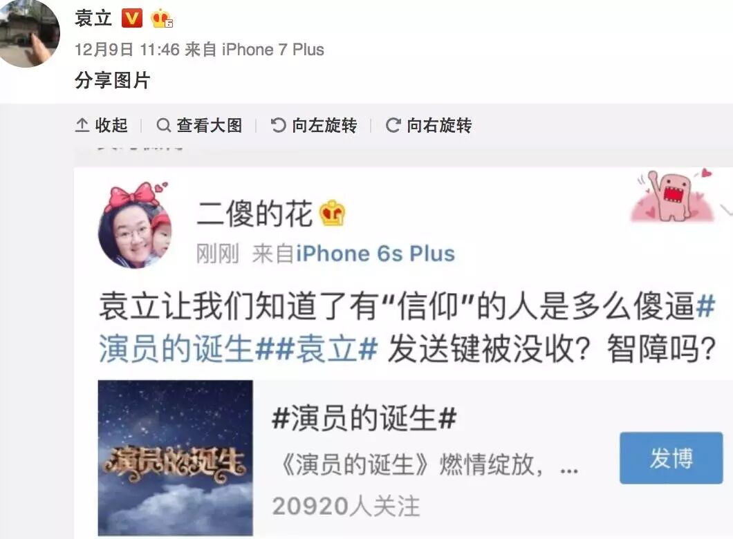 按说节目组得罪袁立,直接开撕不就好了嘛!袁立并没有,她反而在微博晒出网友骂她的记录……