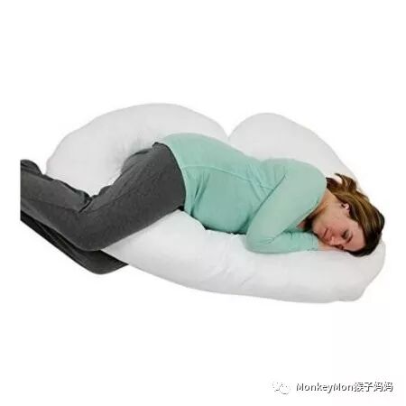 美国这边很流行一种J/C型孕妇枕头,睡觉时条形部分垫在肚子下面,弯勾部分夹在腿间,绝大多数孕妇都使用得非常舒适,认为是孕期睡眠的救星。我也用了一个,确实越是往后越是好用,很好地支撑了日渐长大的肚子,也让侧睡的双腿找到了平衡。