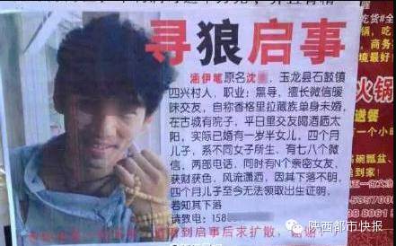 图中信息原文是:涵伊笔原名沈某,玉龙县石鼓镇四兴村人,职业:黑导,擅长微信暧昧交友,自称香格里拉藏族单身未婚,在古城有院子,平日里交友喝酒晒太阳,实际已婚并有一名一岁半的女儿和一名四个月大的儿子,系不同女子所生,有七八个微信,两部电话,同时有N个亲密女友,获财获色,风流倜傥,因其下落不明,四个月儿子至今无法领取出生证明,若知其下落,请致电:158xxxxxxxx。