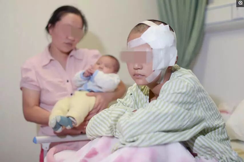 这个头上缠着纱布的女孩今年才14岁,是一个几个月大孩子的妈妈,她的丈夫脾气暴躁,家暴了她,她被砍伤住院。