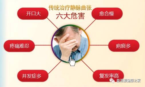 外科手术:外科手术剥脱疗法治小腿静脉曲张,患者痛苦大、费用高、留下疤痕及并发症,患者难以接受。