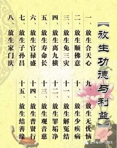 1:每天放生每日一善 。