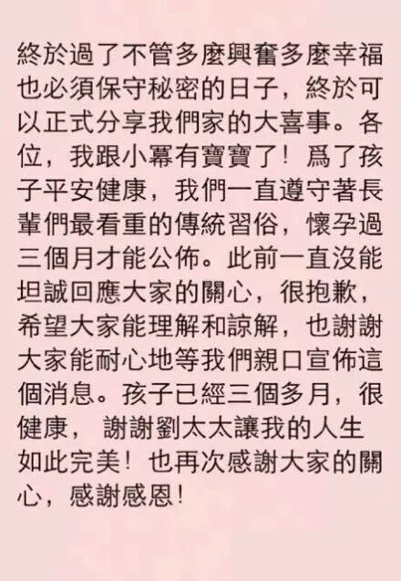 婚礼后,刘恺威受访时才公布好消息,称: