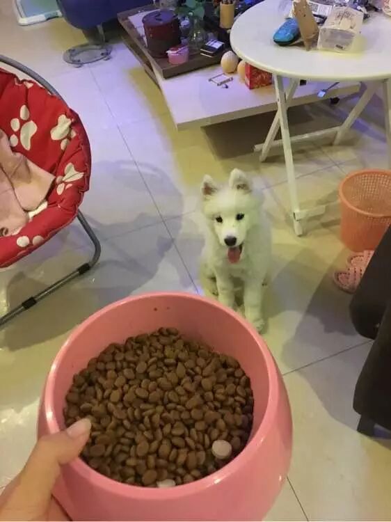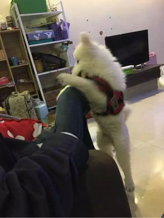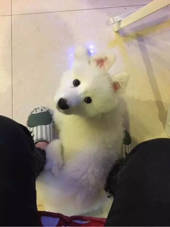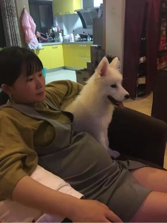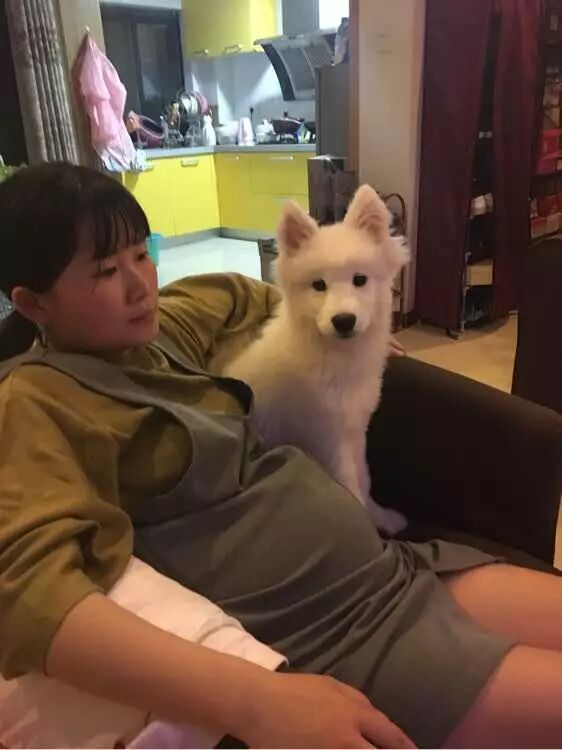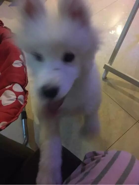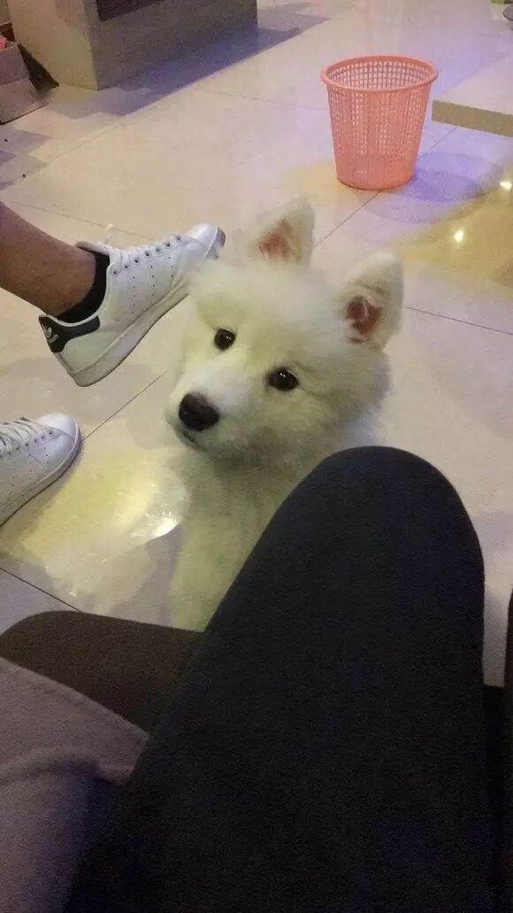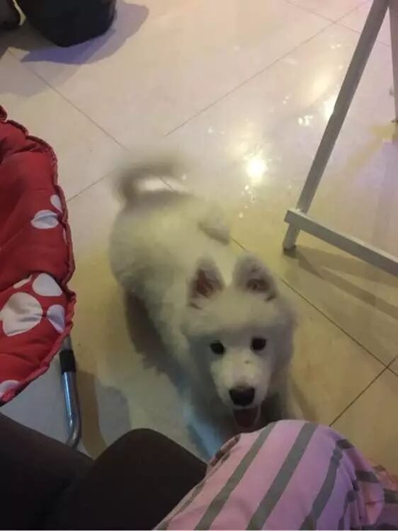 养了这只萨摩耶,来历真可谓是一波三折,狗狗是在一个熟人开的宠物店里发的转让里看到的,说半买半送,一直很想养一只萨摩耶,当时就很心动,不顾自己怀孕之躯,还有和老公吵的风险,付了两百定金,约定第二天去领。