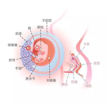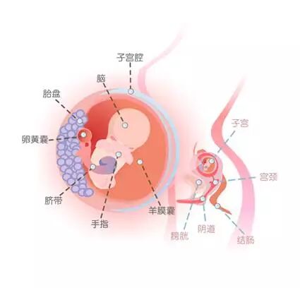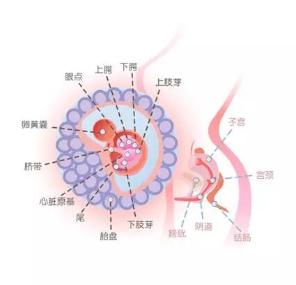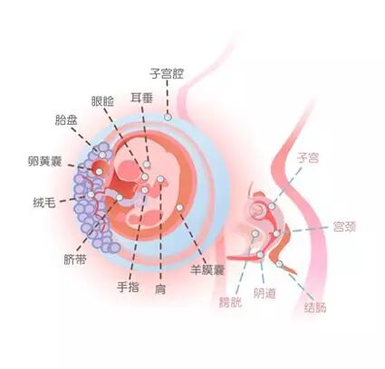 在怀孕第5周时,胚胎的神经管逐渐形成。这些神经管今后会发育成脑和脊柱。怀孕7周左右,胎儿大小约为2-3厘米,胎儿体重约4克。