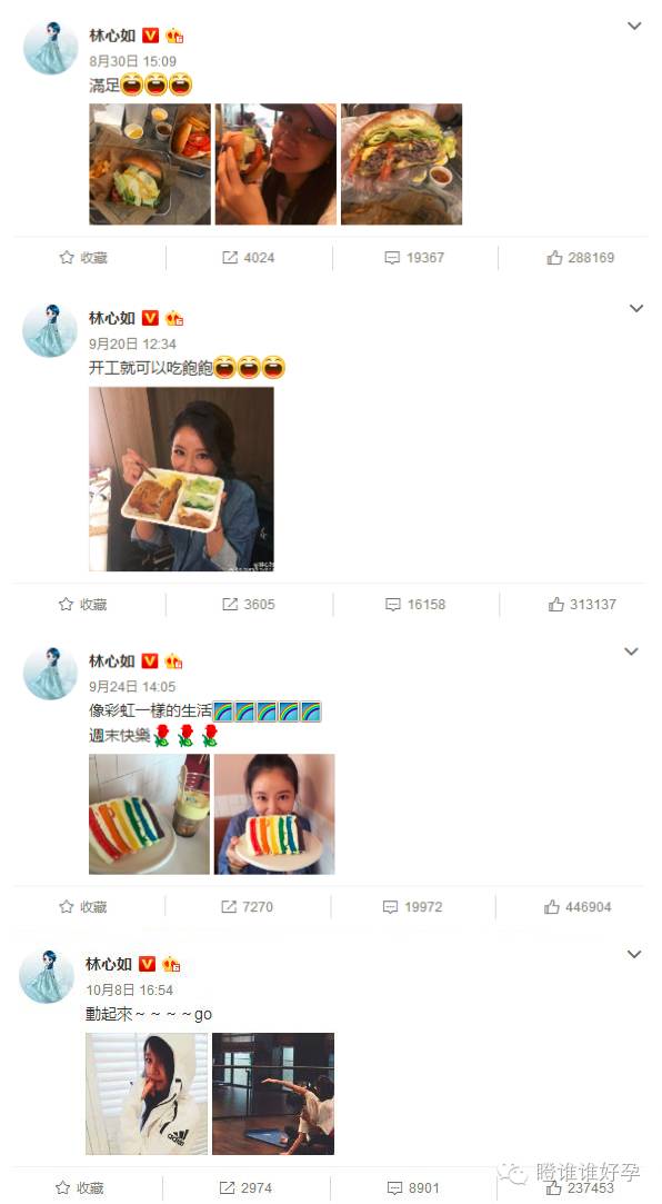 回顾心如微博,在流言蜚语泛滥最厉害的时期,她依然非常积极向上,工作、公益一个不落,发的微博都正能量满满。