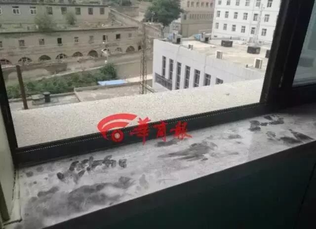 马某跳楼的地点系分娩中心内对门的备用手术室,地面上一双拖鞋孤零零的摆放着,窗台上有警方取证过的痕迹。