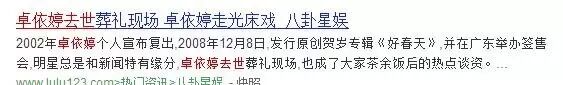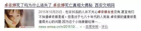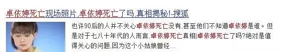 以上的谣言起码还在猜想范围内,娱记们捕风捉雨、见风就是雨,可是卓依婷的这个谣言可就离谱多了,并且已经传得深入人心了:有多少人听说卓依婷已经去世多年了?