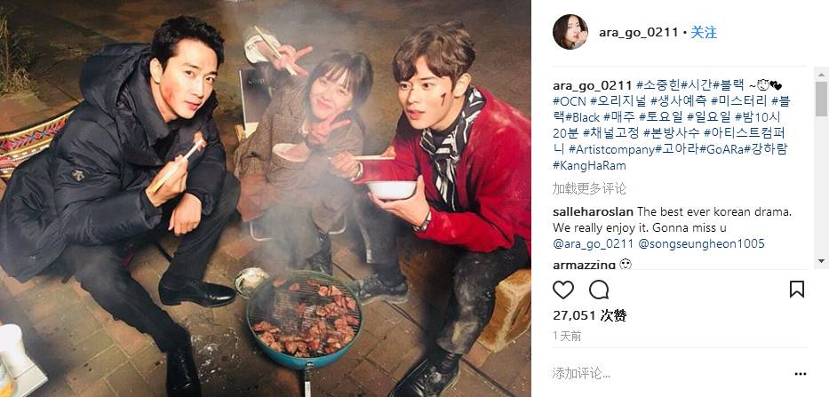 这次曝出绯闻,是因为正在和宋承宪合作拍摄新剧《Black》,虽然可能是为了新戏造势吧,但是从片场的照片来看,两个人应该是真的挺合得来的