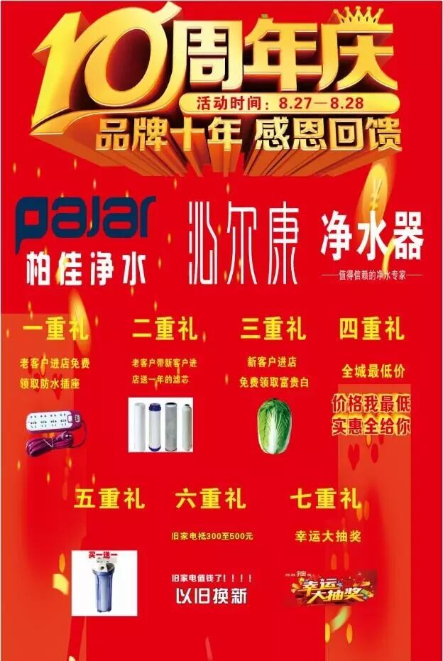 如今,杨女士的十年老店——赵师净水设备有限公司,迎来了十周年庆典,杨女士又为丽江消费者争取来了一大波优惠!