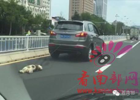 8月23日,网传威海一辆私家车后面拖着一只狗在公路上行驶,狗狗被拖途中一直努力站起来,身下血肉模糊。后来被救下后已经死亡。