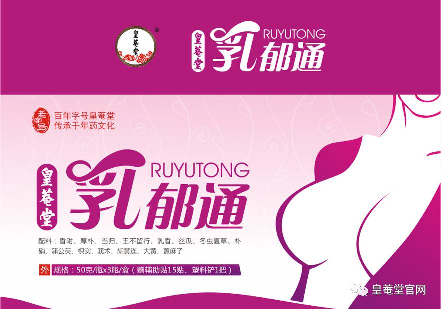 皇菴堂乳郁通可以调理人体内分泌,乳房是足阳明胃经经过的地方,乳房肿块就是足阳明胃经经气循行失常,郁积于乳房之内而造成的。足阳明胃经的经气循行失常多与心情不好、肝气郁结有关,肝气运行不畅,就会产生淤堵。配方内的成份可以抑制肝气,平肝息风,肚脐又通向五脏,与肝是近邻,药效就能迅速通过经络到达肝脏和肝经,使肝气得以正常运行,帮助消除乳腺疾病。