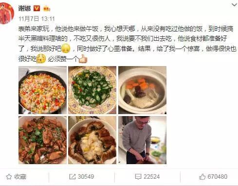最近谢娜在养胎,胃口该当是相当的不错啊!还在微博上晒照,说表弟来看本身,给本身做了一桌子菜。