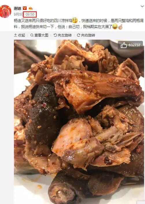 凌晨都曾快十点了,收到了杨迪给她寄的四川凉拌鸡,也长短论工夫,立马拆开了吃。