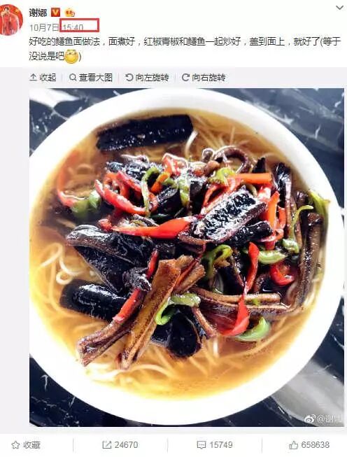 除饭点吃饭,其他时辰还会看状况加餐,之前她就在网上晒过,下午三点过四点的时辰,疑似张杰给她煮了一碗鳝鱼面。